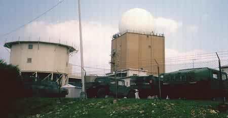 (The search radar tower with radome can be seen in the distance to the left)
