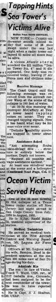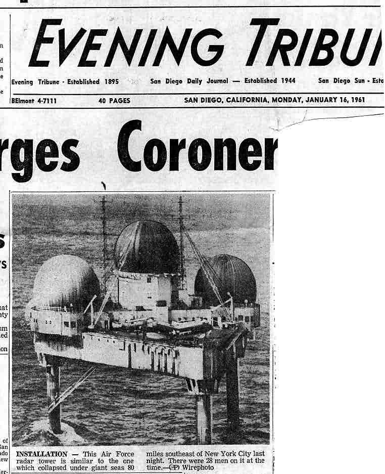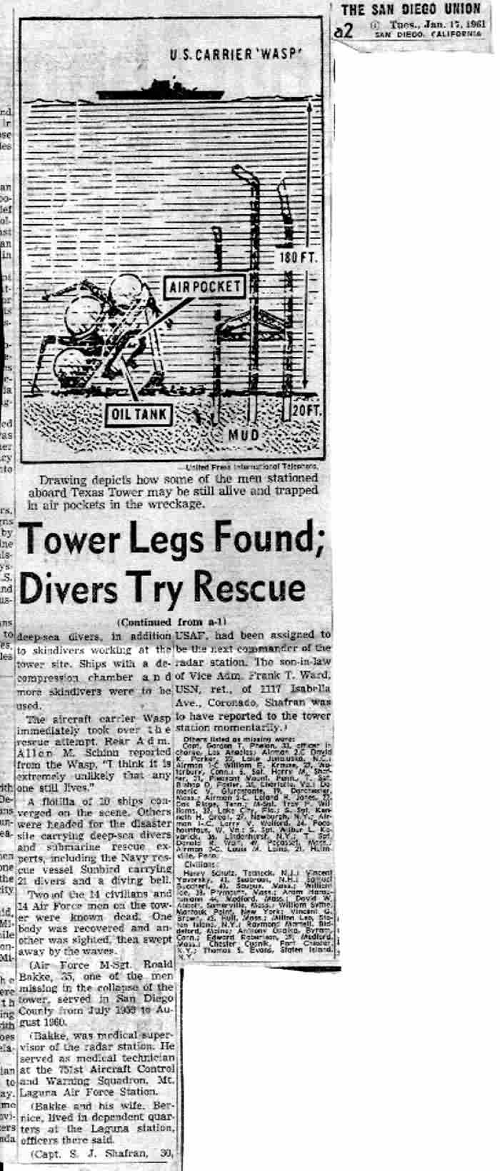 The two newspaper articles appeared in the San Diego Evening Tribune (Jan 16, 1961) and the San Diego Union (Jan 17, 1961). Neither article is complete.