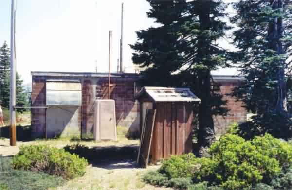 The former gap-filler radar facility itself is in excellent condition, and is in use as a commercial radio repeater site. The ranger at work in the fire-lookout tower next door had a photocopy of a photograph taken in 1960 showing the whole site, both the lookout and the gap-filler radar facility complete with radar tower and antenna. The ranger gave me the name and phone number of whom to contact, and I was subsequently able to obtain a copy of the original photo (posted under "Photographs"). Now, here are my recent photos from 20 July 2003.